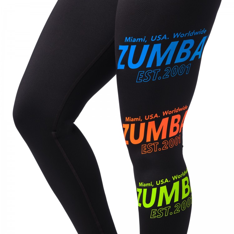 • Graphics Down Left Leg That Says "Miami, USA. Worldwide", "Zumba EST. 2001"