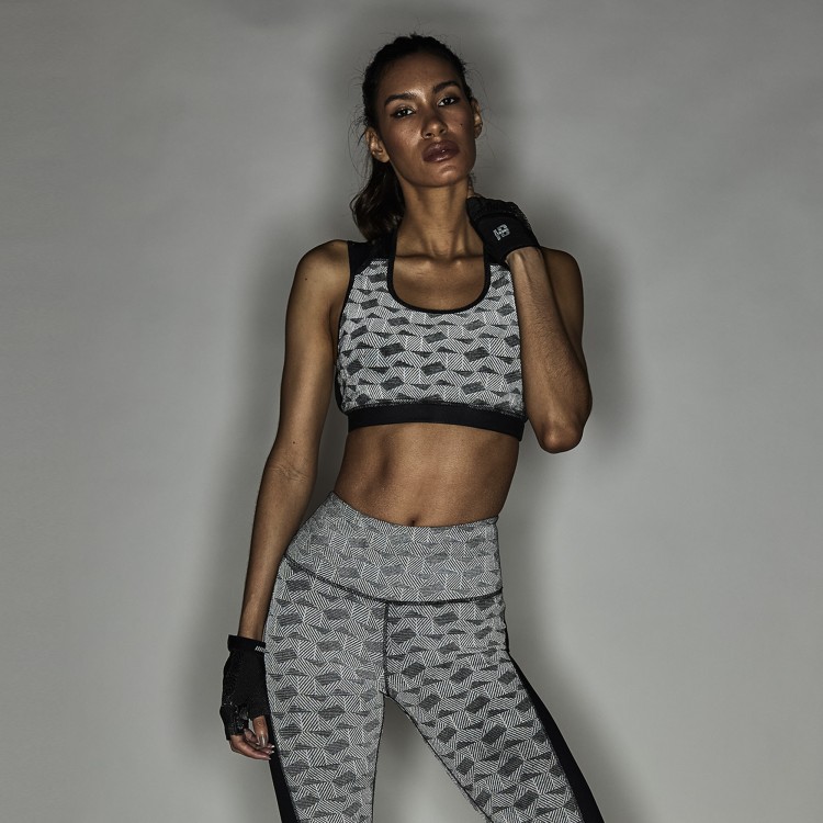 Level up in the Reflective Mesh Logo Bra. The double layer back construction functions as a high impact posture corrector to help you perfect your form during class.